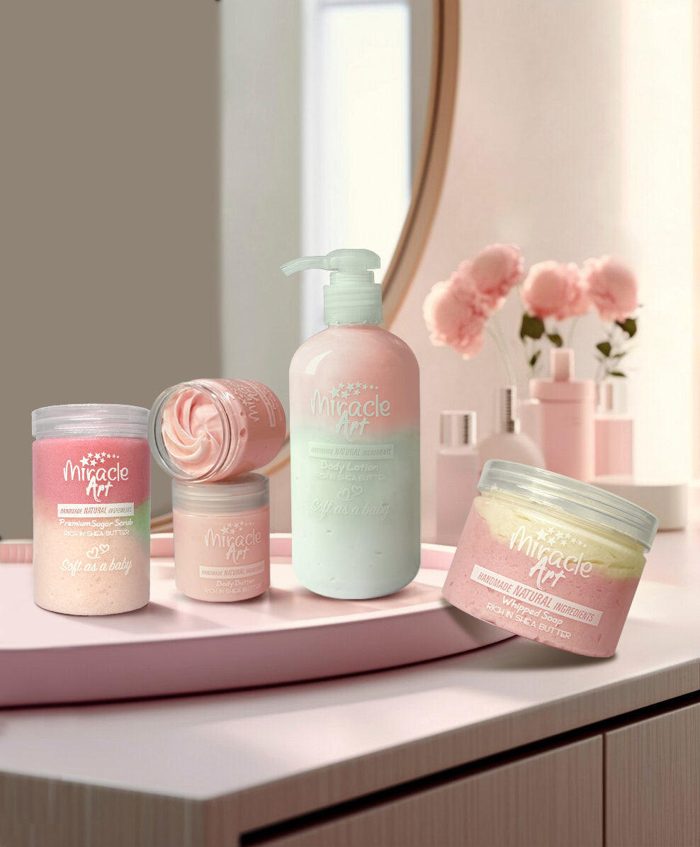 UAE's favourite luxury vegan skincare — whipped body butters, sugar scrubs & gift sets. Handmade with nature's finest. No harsh chemicals. Ever.