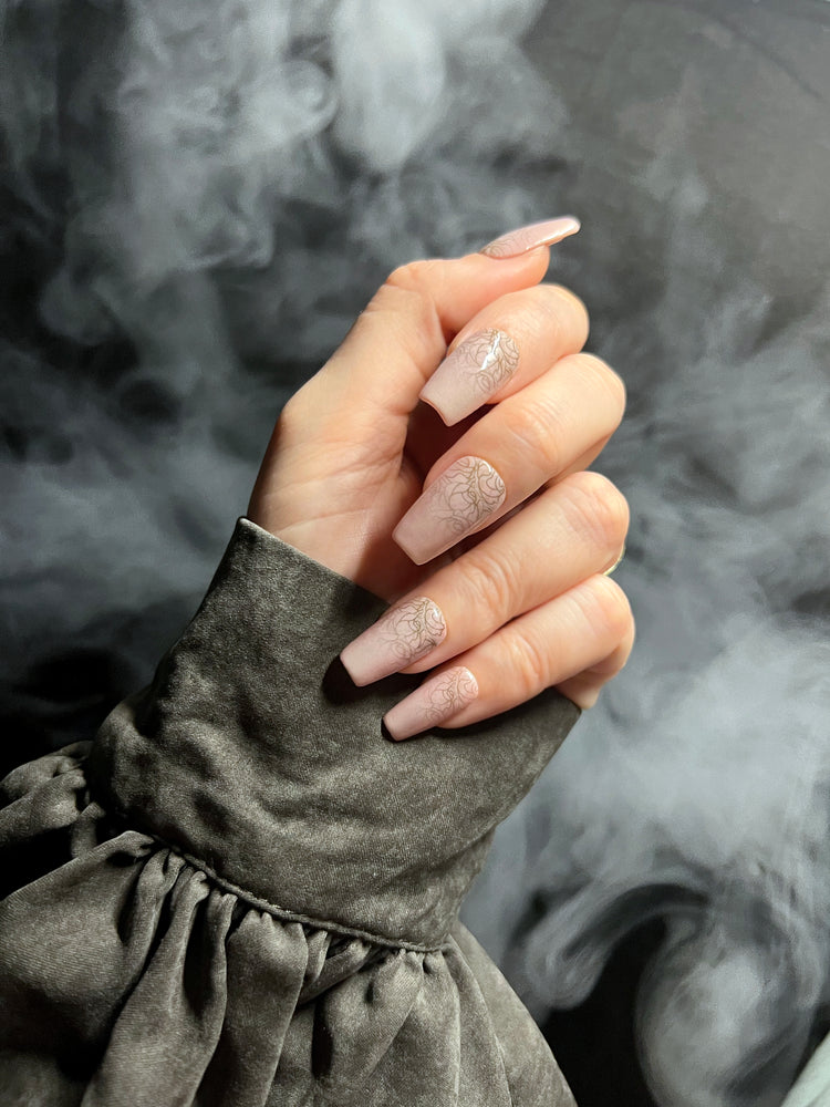 Miracle Art Salon Gel Nails Coffin, 30 Pieces Salmon Calligraphy Co30007